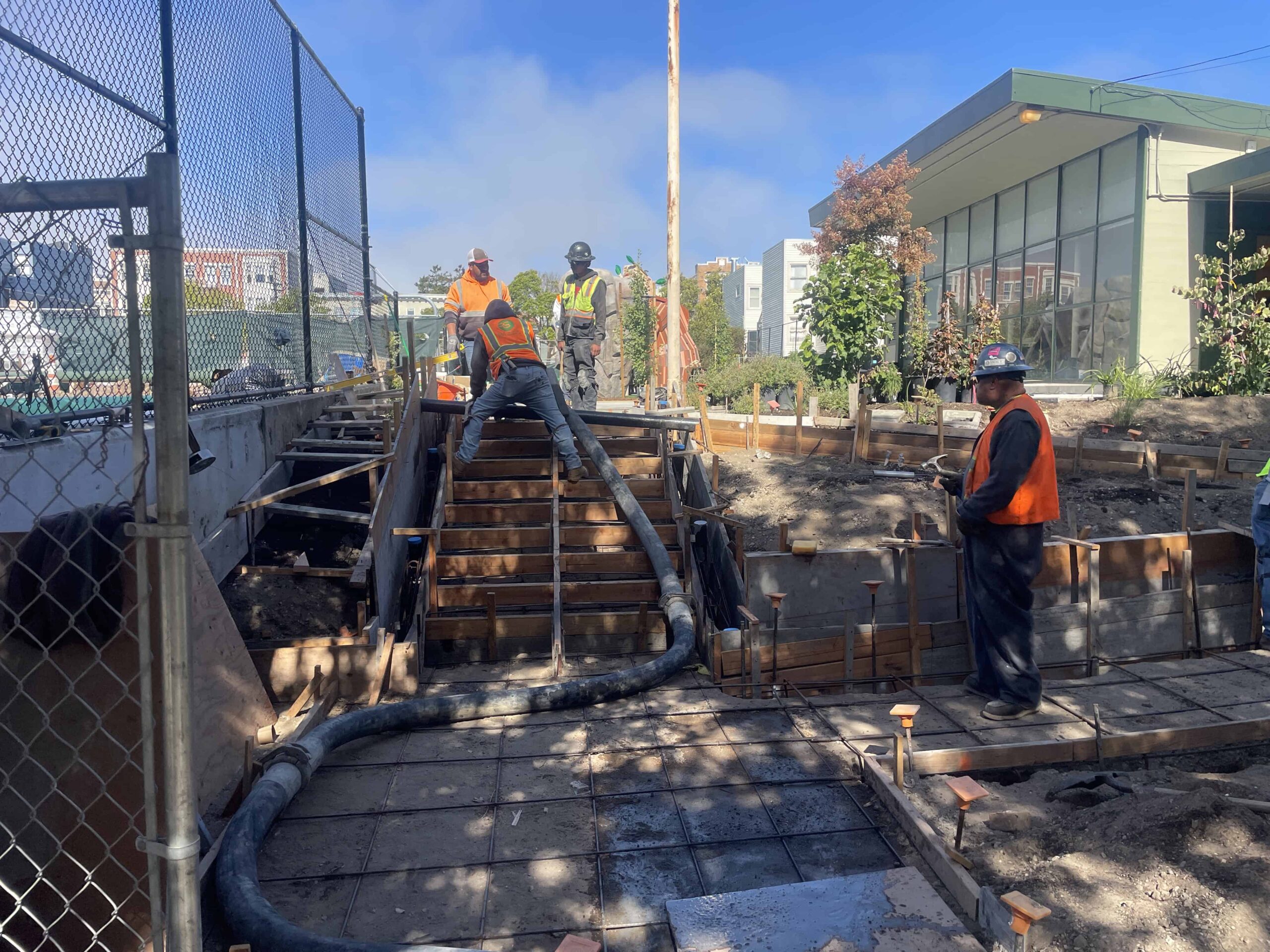 The Richmond Playground project involves modernizing the existing playground by adding new tot and youth play areas, a sand-play zone, and an accessible entry plaza. Two attached restrooms also get interior updates. Work includes site demolition, concrete formwork, sidewalks, and perimeter enhancements while preserving newly resurfaced courts and fencing.
